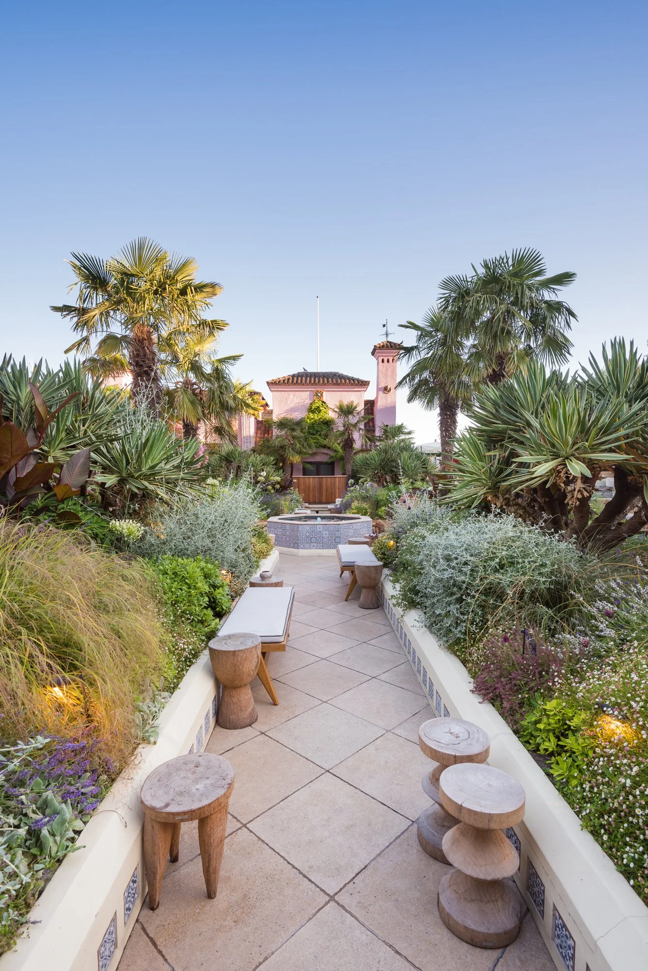 The above image captures the Spanish garden, inspired by the historic Alhambra and its renowned Moorish style. It's hard to believe this is in the heart of West London and not in Spain! Zahra Beige Paving enhances these sun-kissed tones, adding warmth, cohesion, and a timeless Mediterranean elegance to the space.